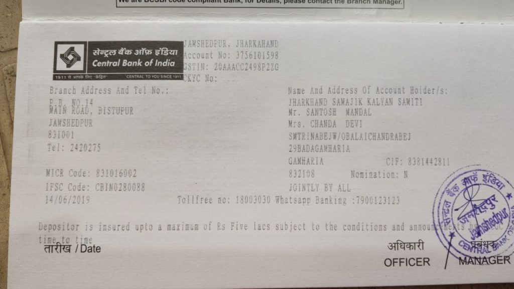 Account Name: Jharkhand Samajik Kalyan Samiti